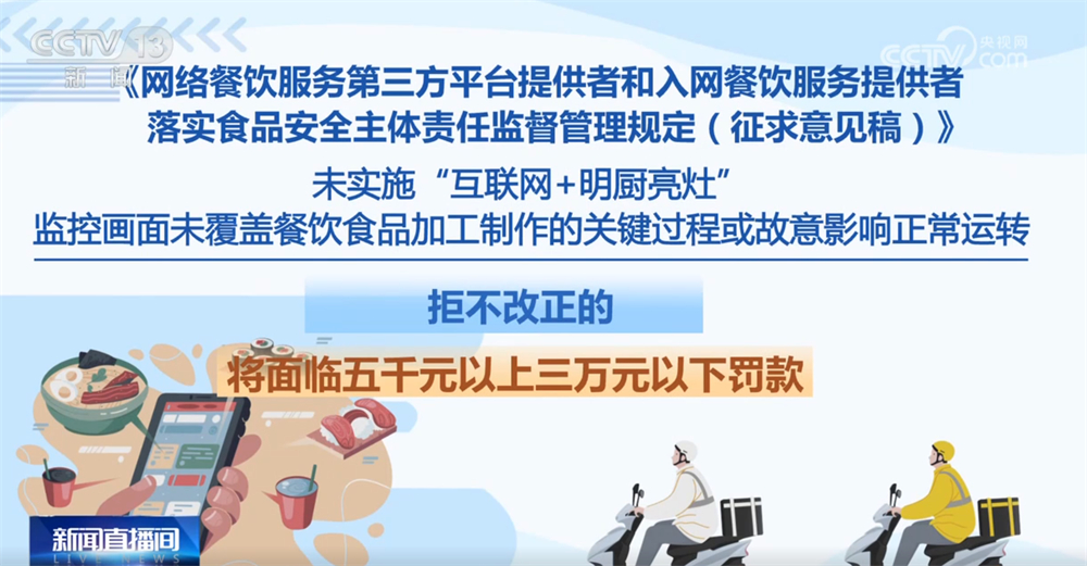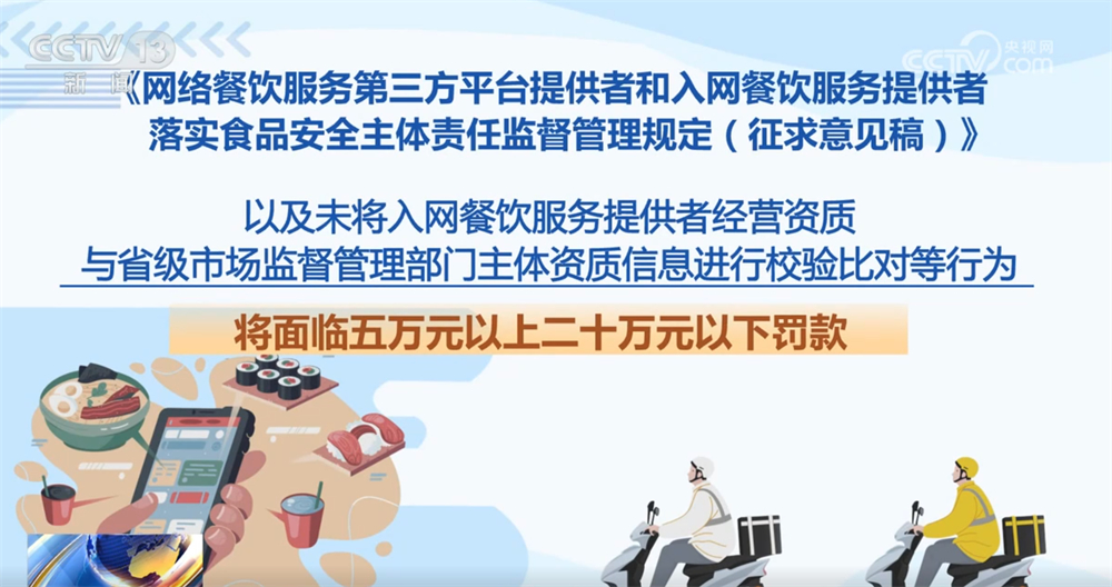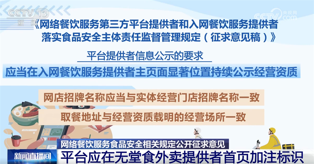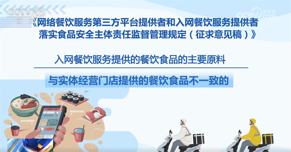 记者16日从市场监管总局领会到,为进一步加强收集餐饮办事食物平安监管,《收集餐饮办事第三方平台供给者和入网餐饮办事供给者落实食物平安从体义务监视办理(收罗看法稿)》面向社会公开收罗看法。这份办理收罗看法稿有哪些亮点?一路来领会。收罗看法稿明白了平台供给者收集餐饮办事食物平安从体义务,要求对入网餐饮办事供给者的运营天分、加工制做、卫生等进行监测和抽查。每月线下抽查入网餐饮办事供给者的比例不低于百分之五,两年内实现全笼盖。监测和抽查成果留存备查,留存刻日不得少于2年。平台供给者该当将入网餐饮办事供给者运营天分取省级市场监视办理部分从体天分消息进行校验比对,校验不成功的不得上线运营。